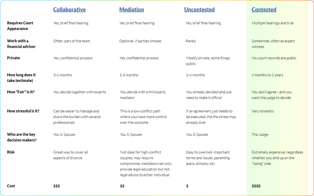 How Does Contested Divorce Compare to Other Paths of Divorce?